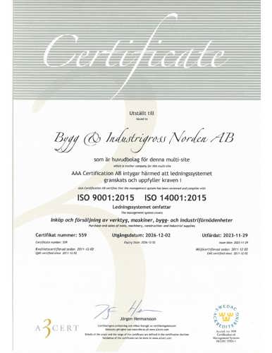 Certifikat 2023 BIG ISO 9001 - ISO 14001