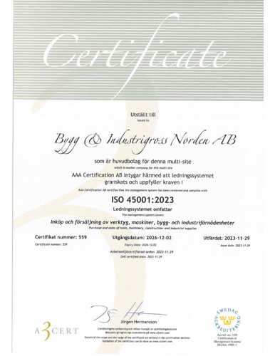 Certifikat 2023 BIG ISO 45001